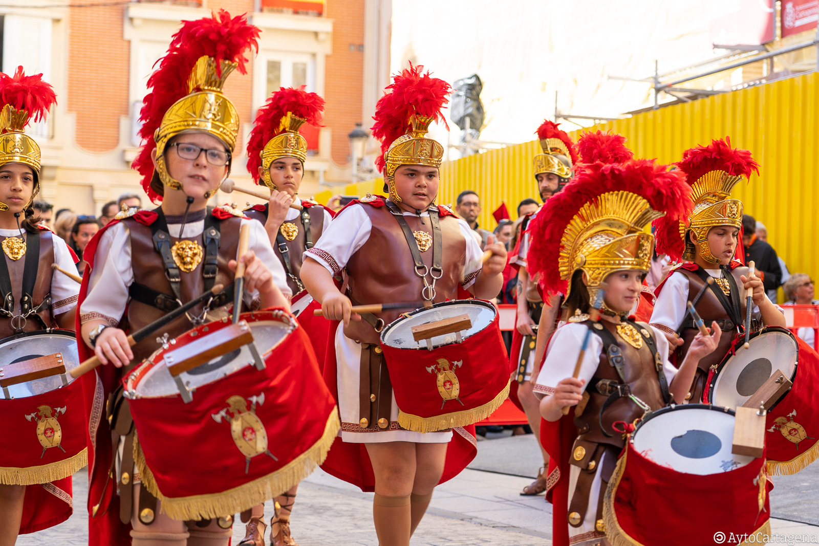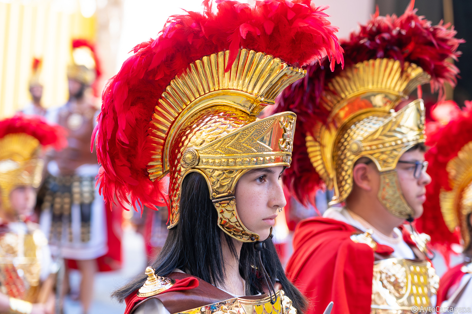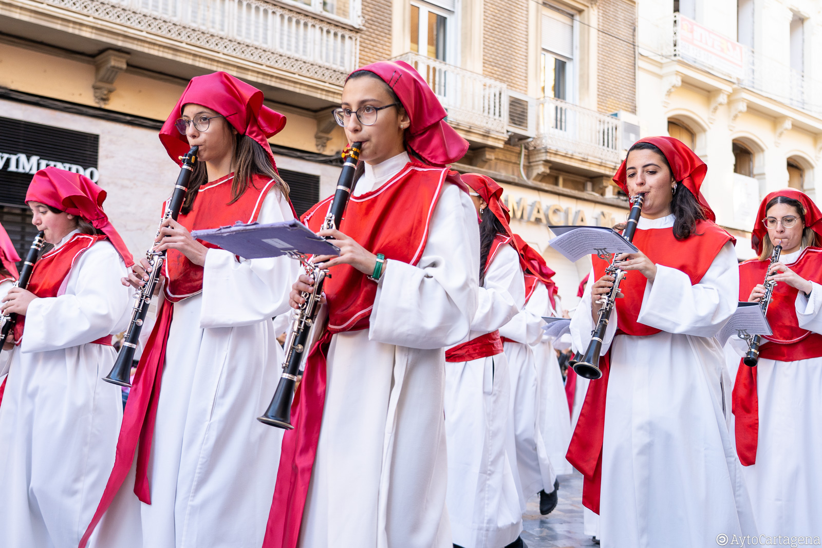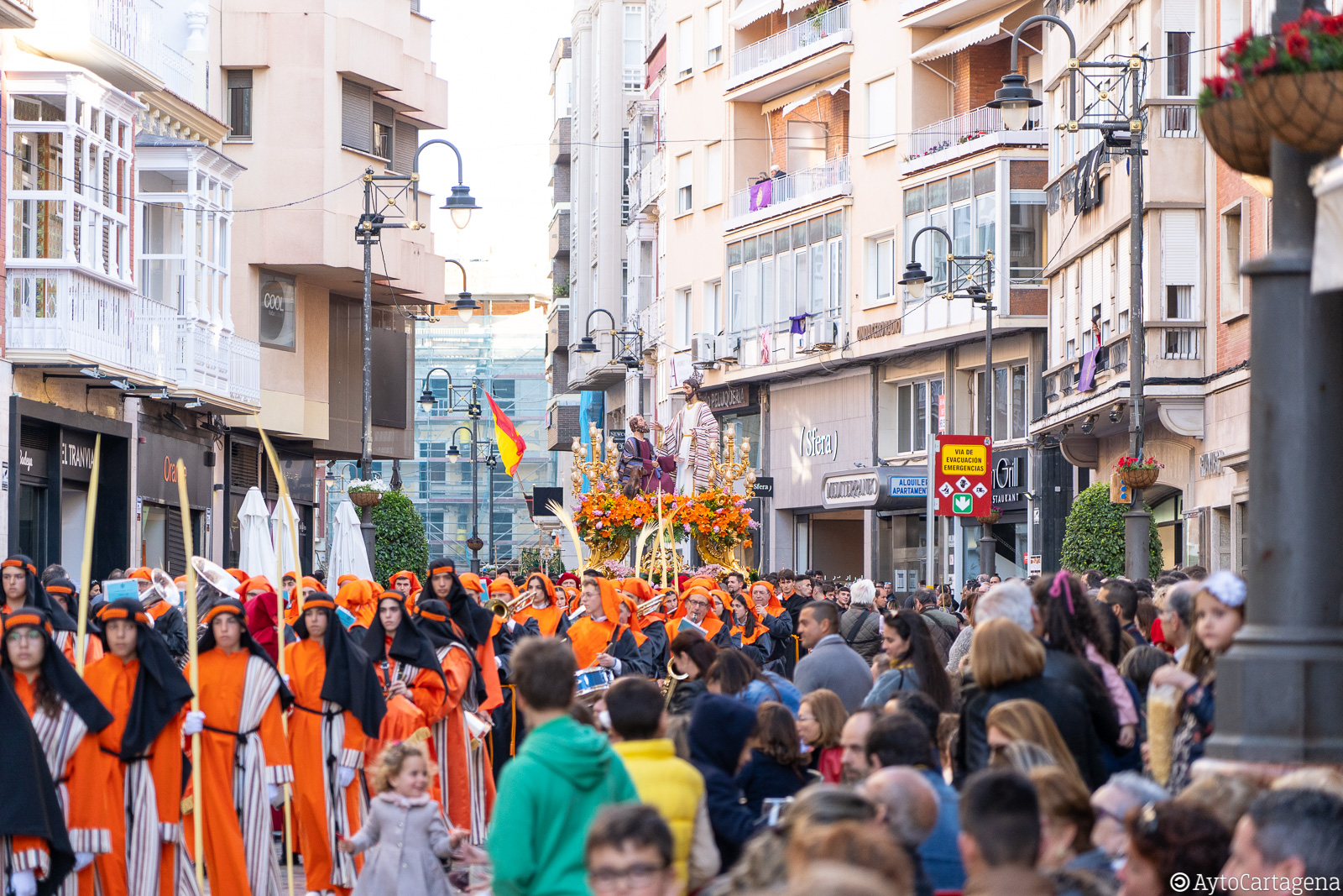 La procesión arrancó a las 17 horas, desde la Iglesia de Santa María de Gracia, con los guiones que dieron paso a los granaderos y a los personajes bíblicos. Moisés, el rey David, el Faraón y sus sirvientes, el rey Herodes, el Sumo Sacerdote, trompeteros y porteadores del Arca de la Alianza recorrieron las calles de Cartagena ante la atenta mirada de miles de espectadores.