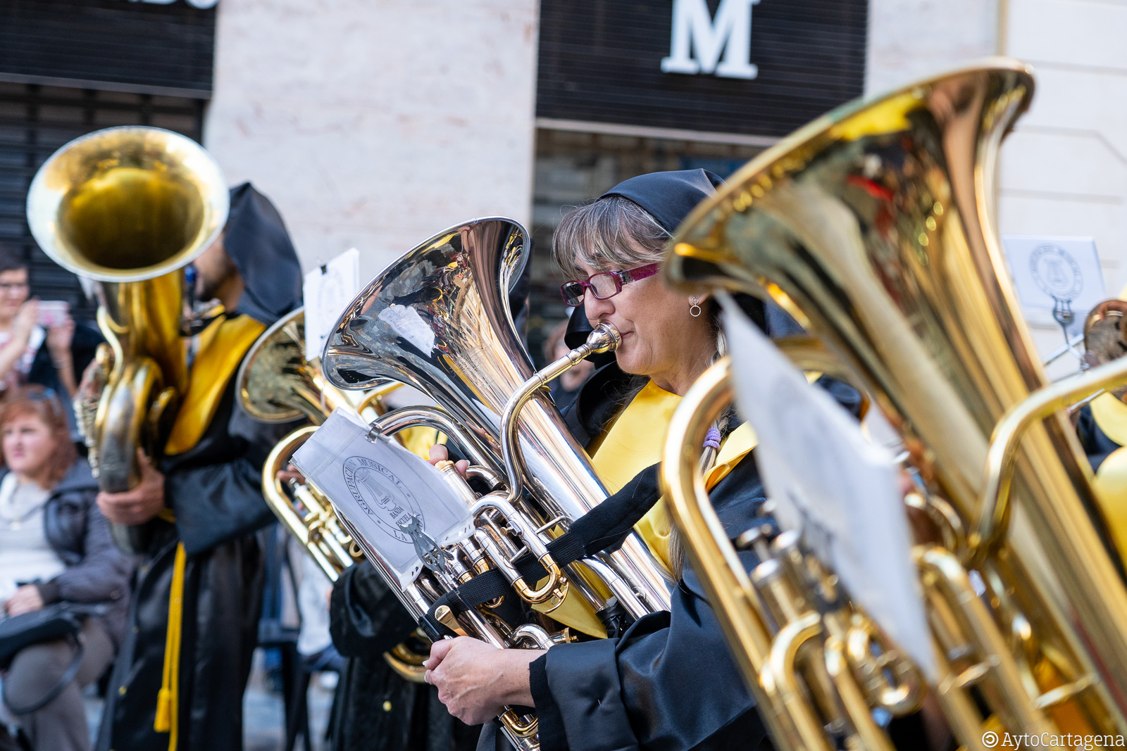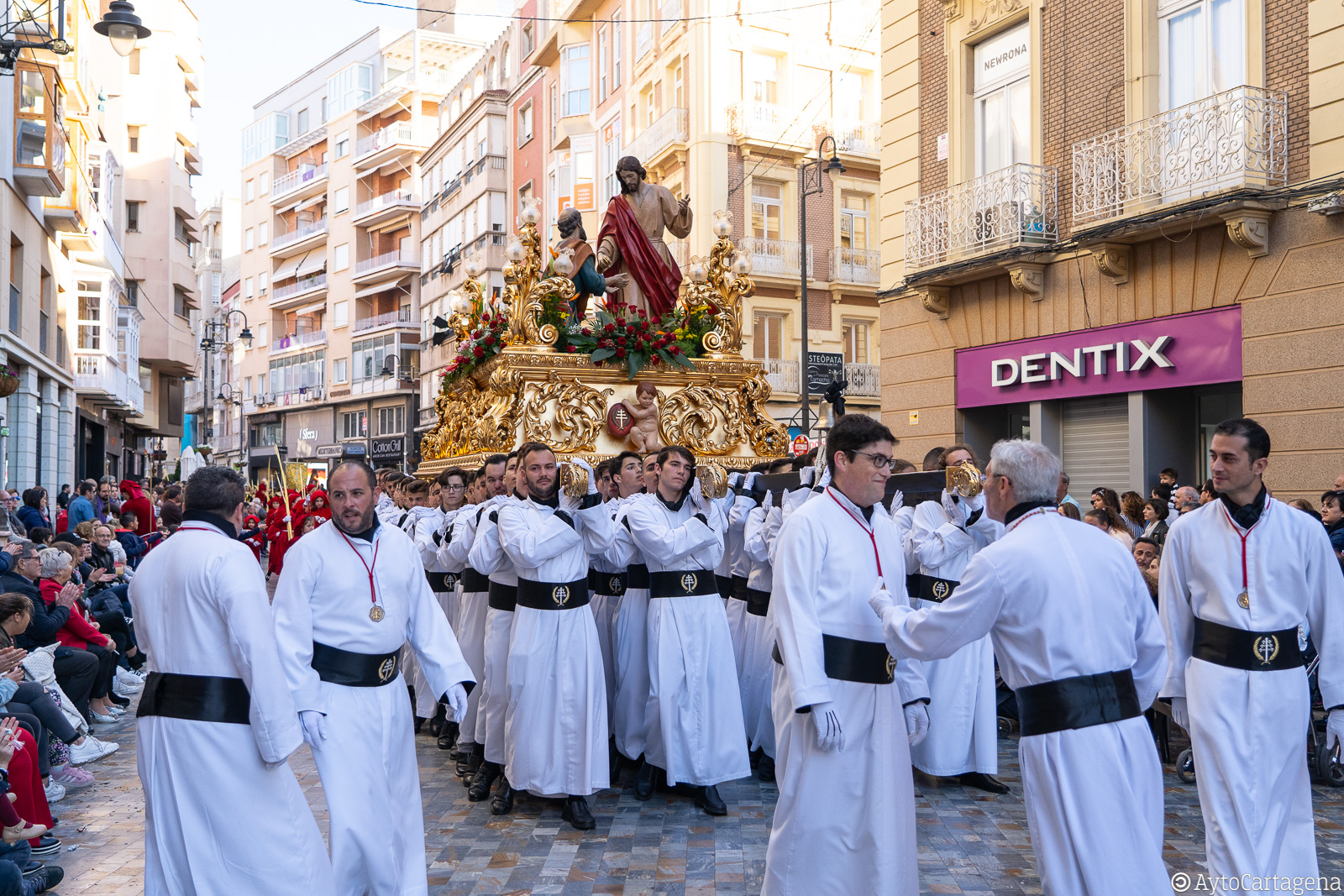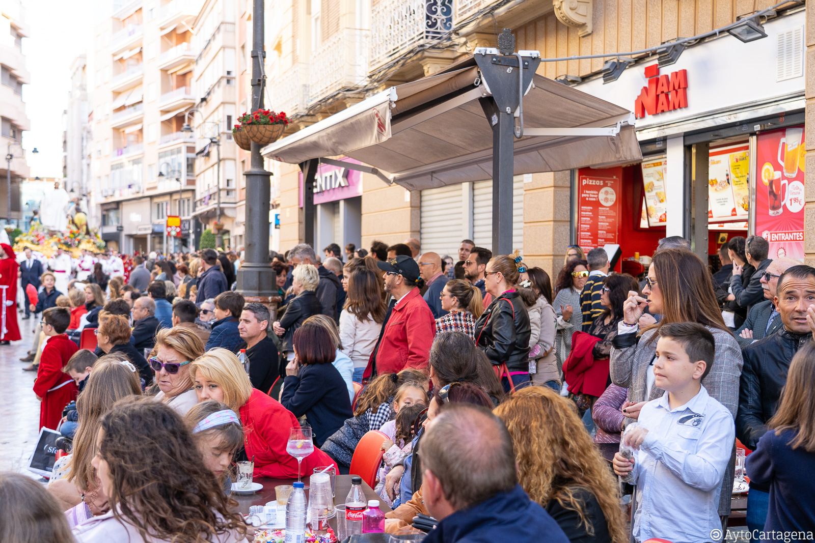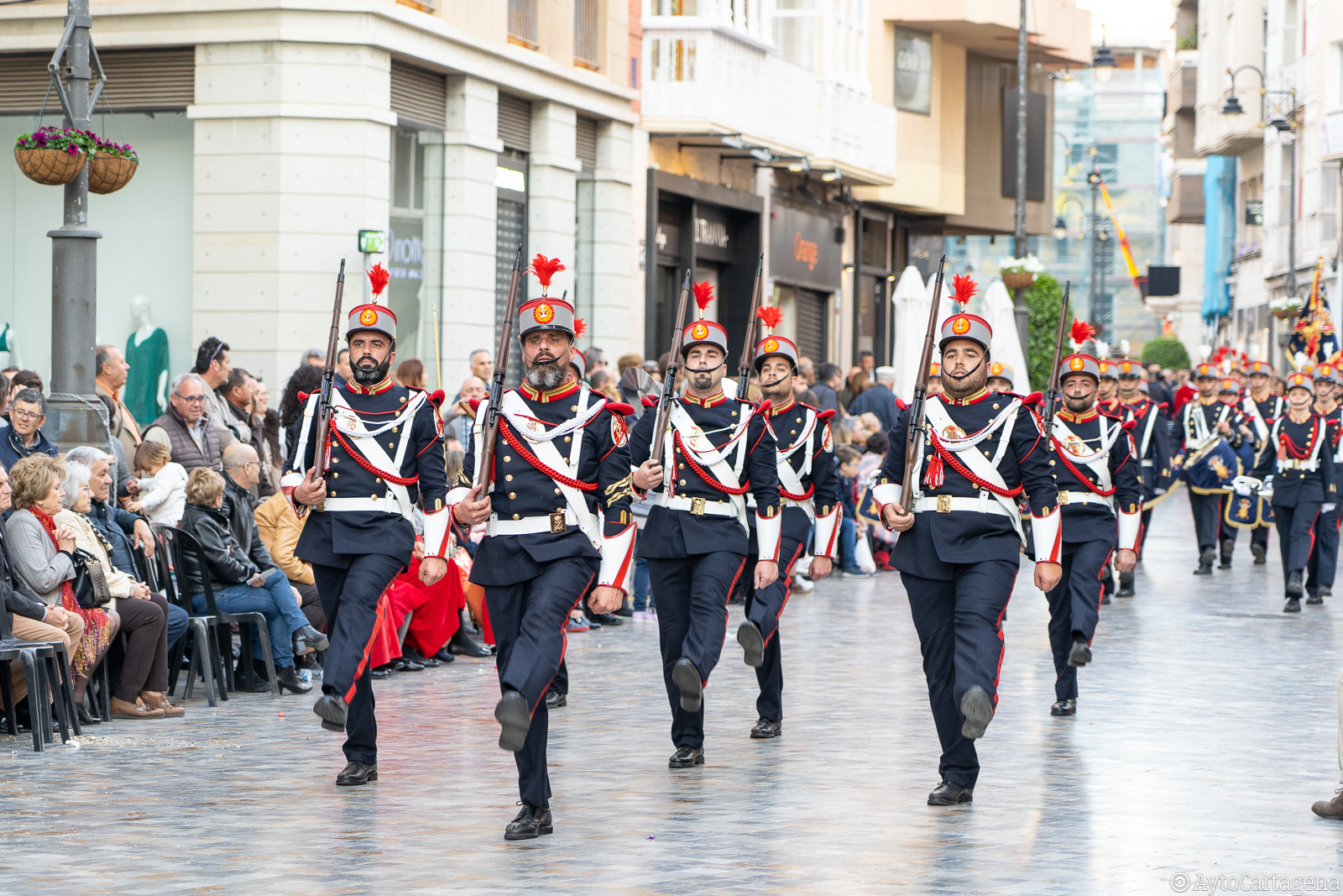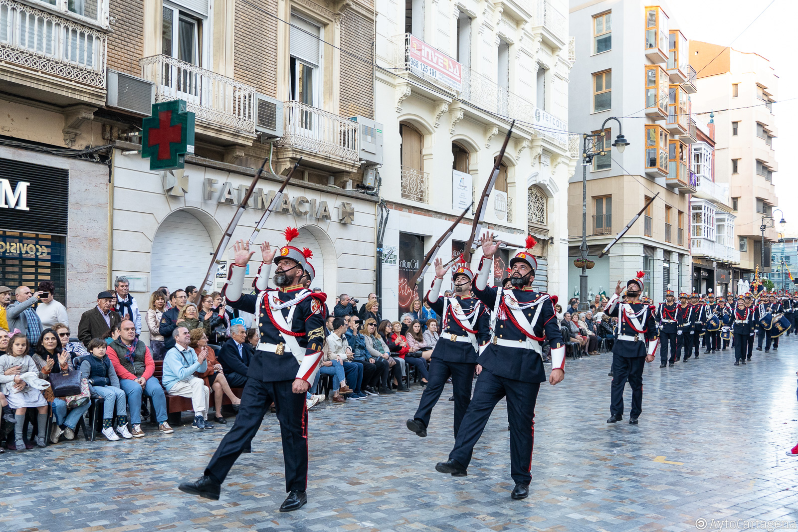 La procesión arrancó a las 17 horas, desde la Iglesia de Santa María de Gracia, con los guiones que dieron paso a los granaderos y a los personajes bíblicos. Moisés, el rey David, el Faraón y sus sirvientes, el rey Herodes, el Sumo Sacerdote, trompeteros y porteadores del Arca de la Alianza recorrieron las calles de Cartagena ante la atenta mirada de miles de espectadores.