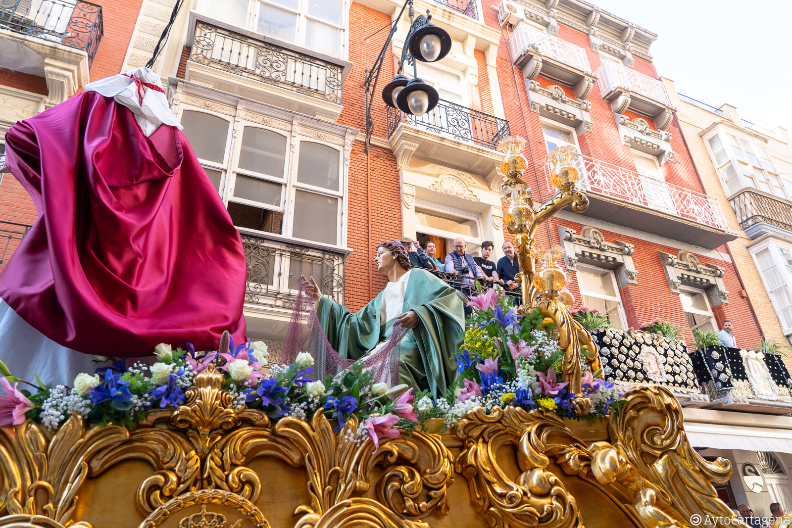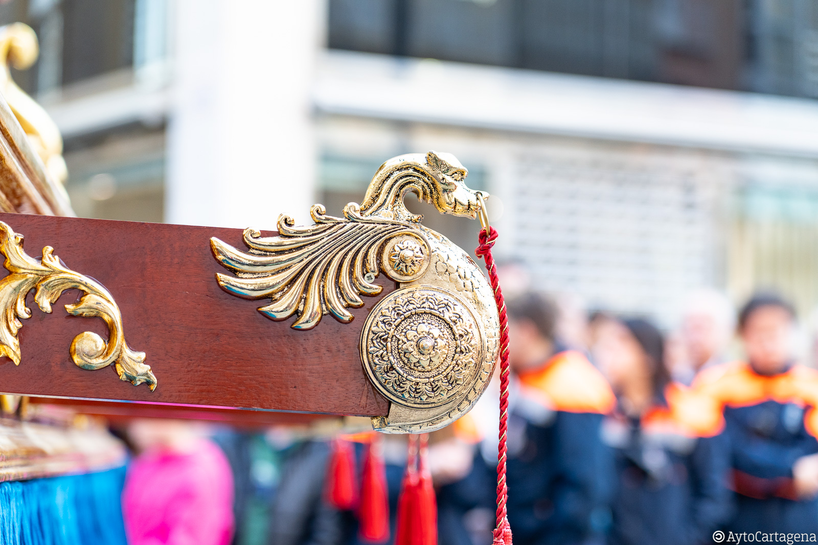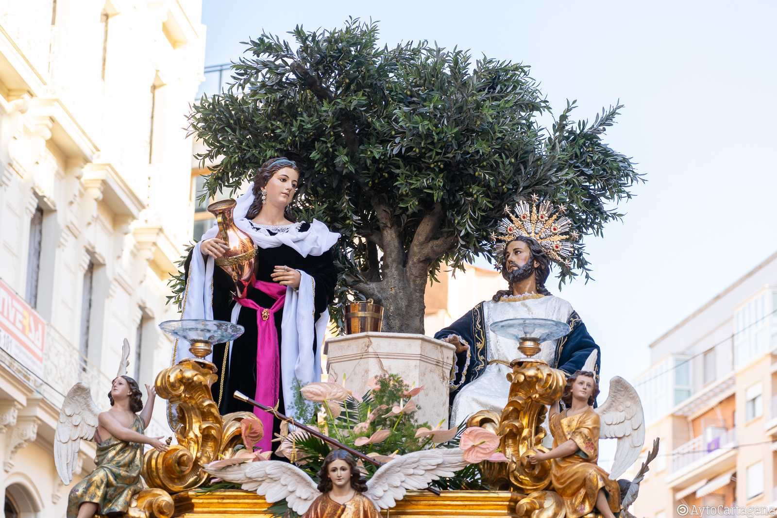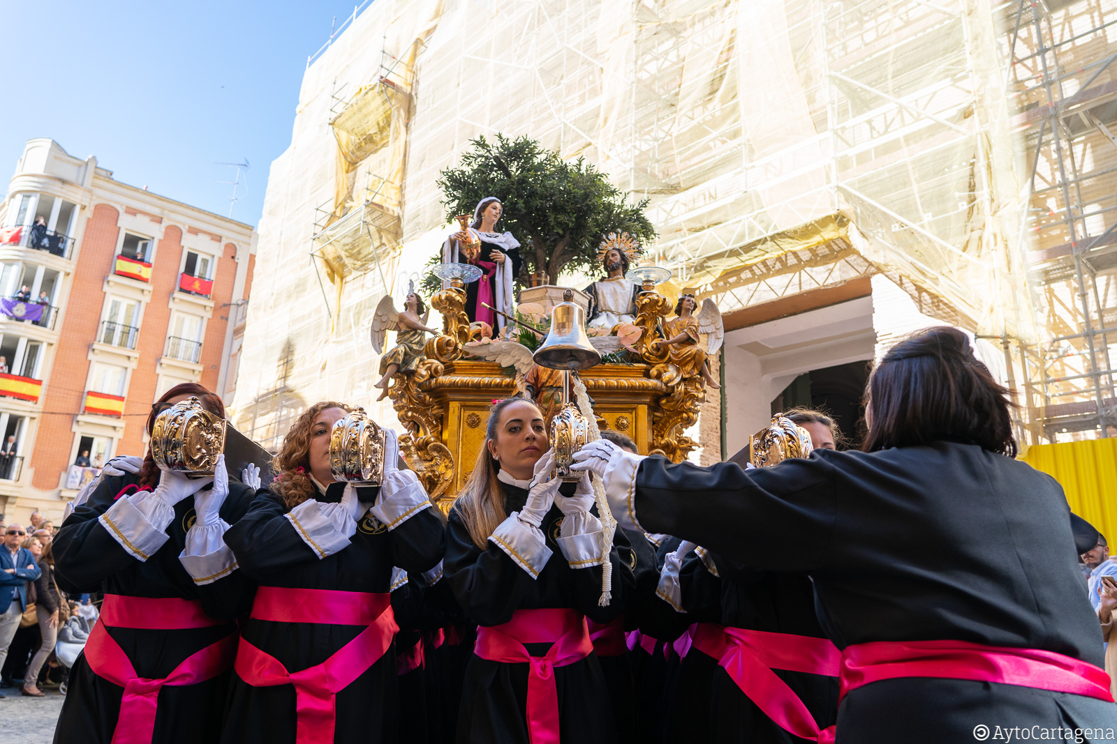 La procesión arrancó a las 17 horas, desde la Iglesia de Santa María de Gracia, con los guiones que dieron paso a los granaderos y a los personajes bíblicos. Moisés, el rey David, el Faraón y sus sirvientes, el rey Herodes, el Sumo Sacerdote, trompeteros y porteadores del Arca de la Alianza recorrieron las calles de Cartagena ante la atenta mirada de miles de espectadores.