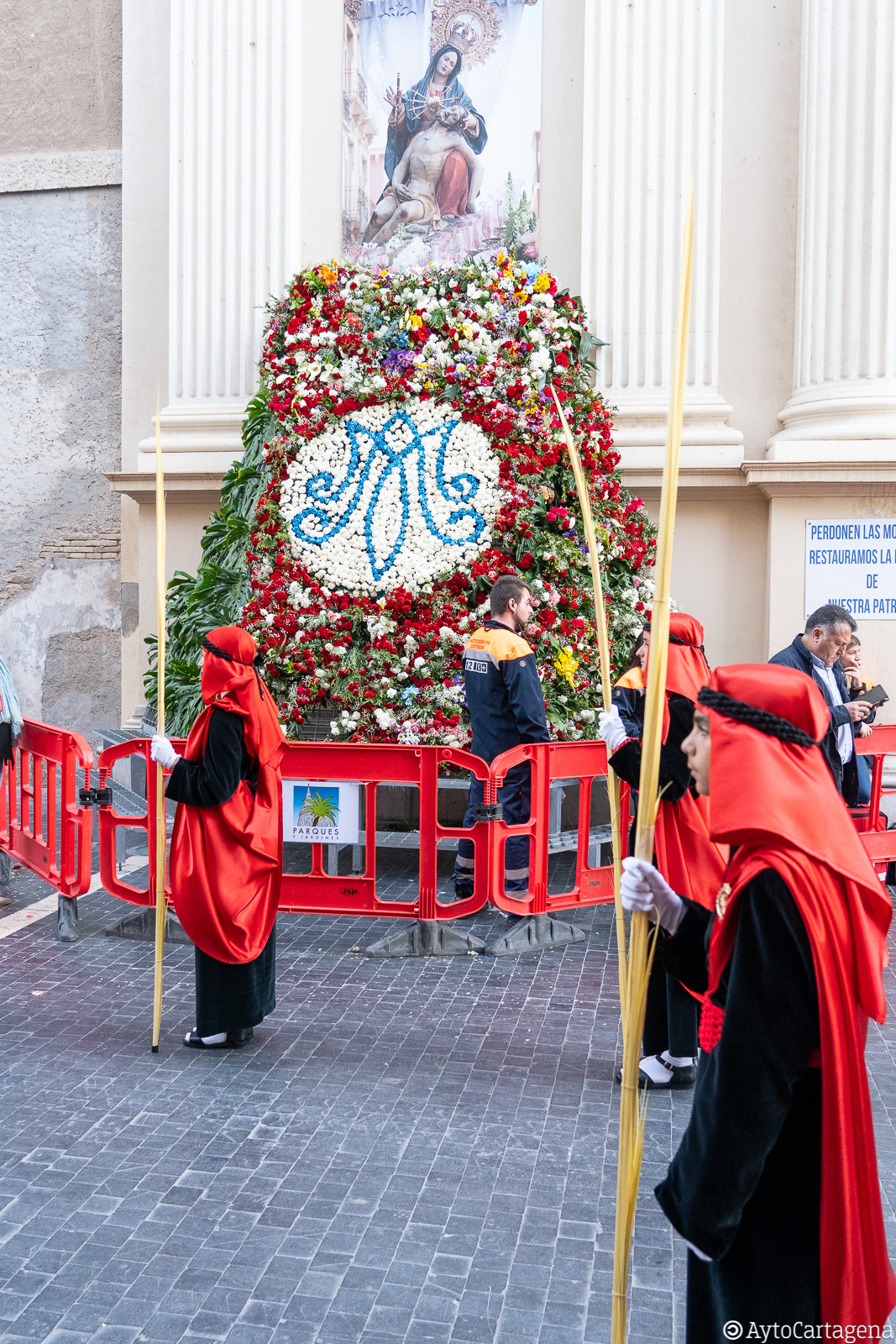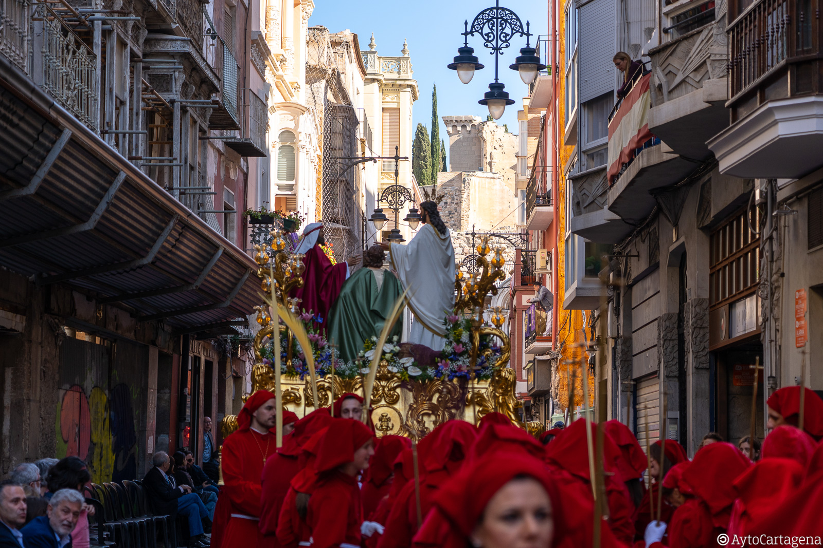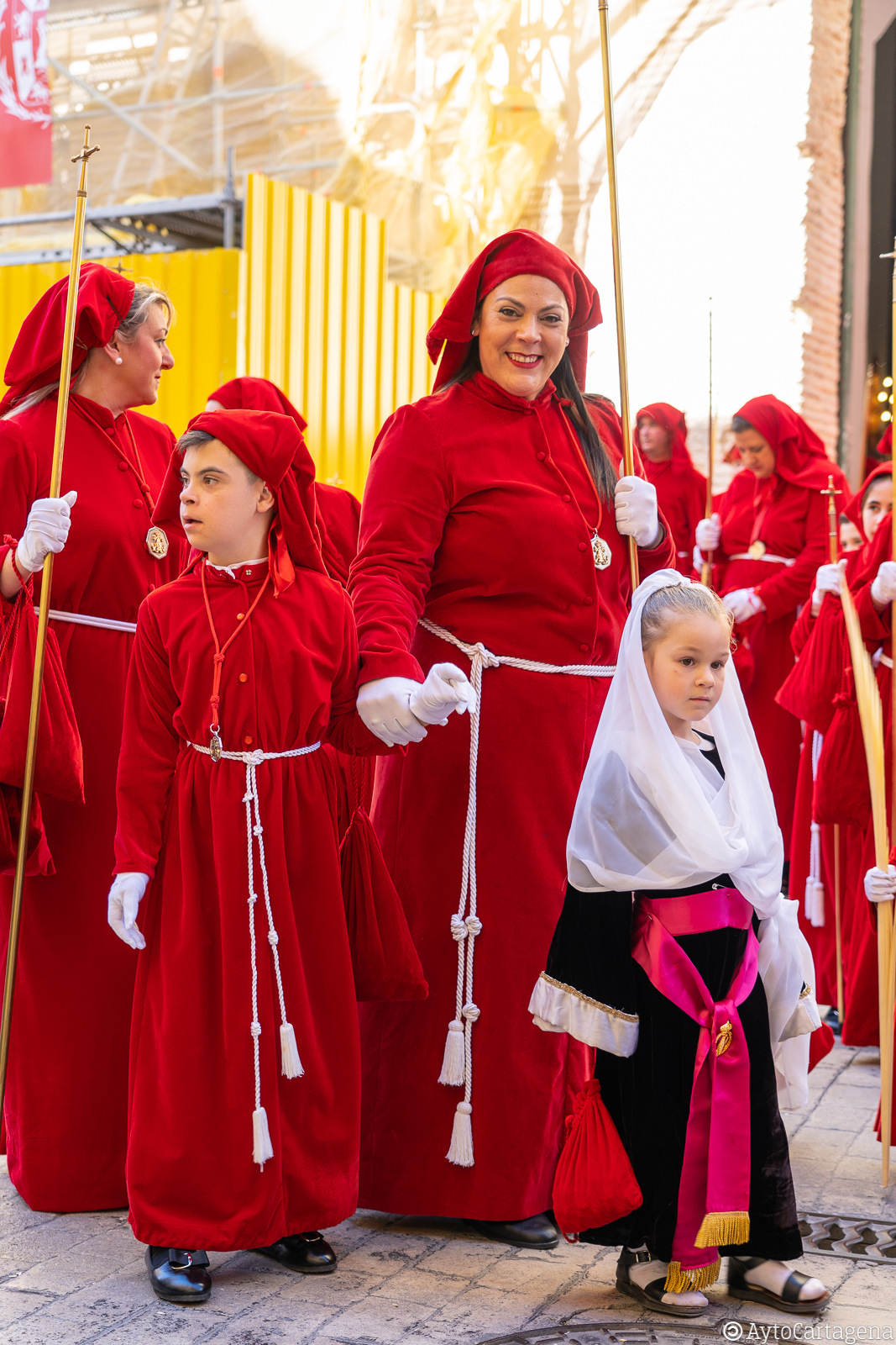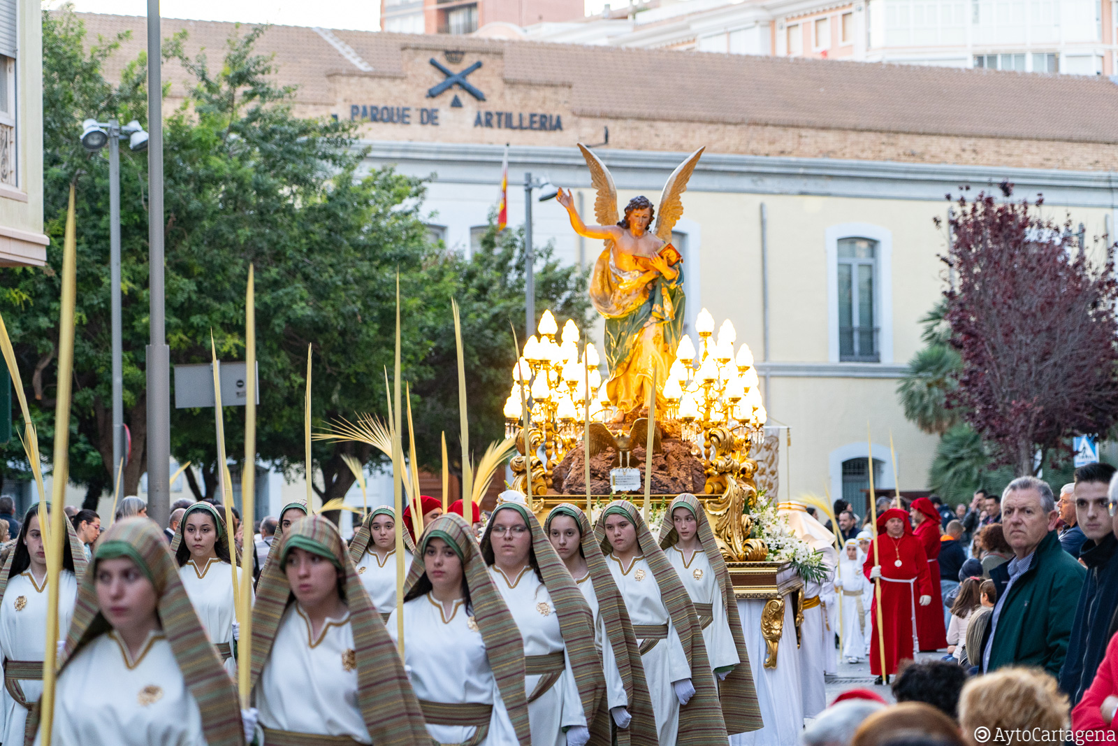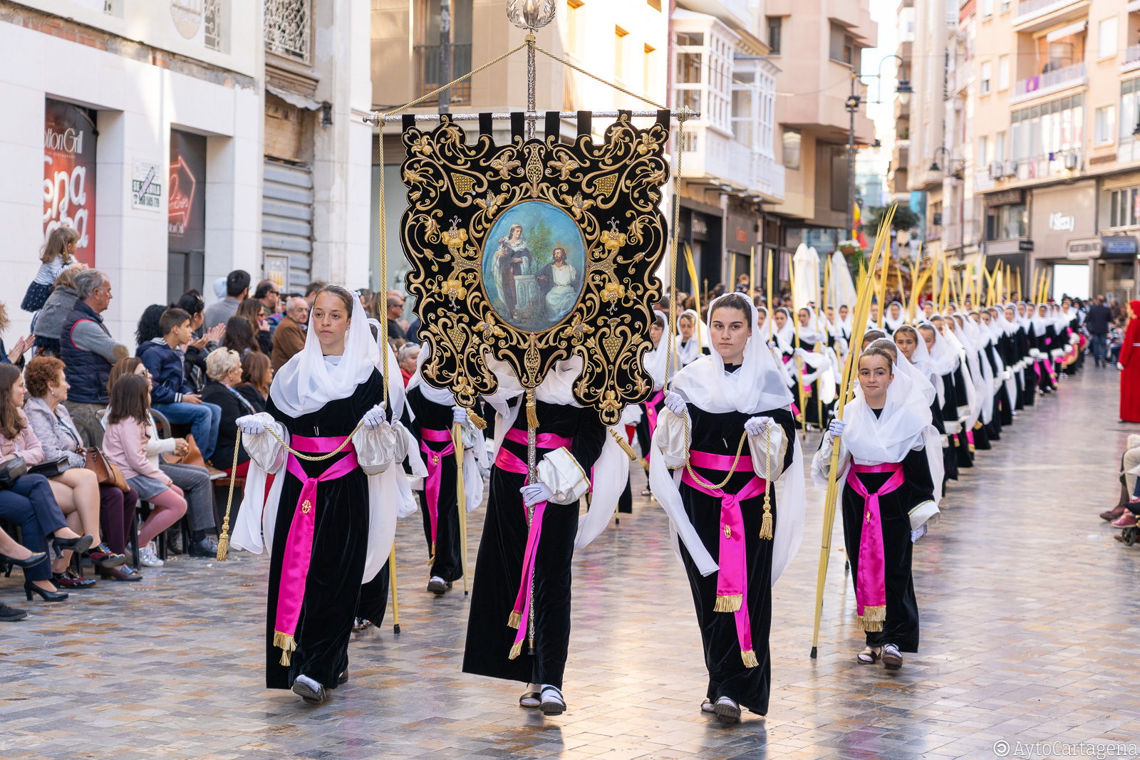 Las calles de la ciudad se inundaron de niños ataviados con trajes de hebreos conjuntados por los colores de las agrupaciones a las que pertenecen. Un desfile salpicado de palmas y varas de olivos armonizado con el típico ritmo cadencioso de las procesiones cartageneras.