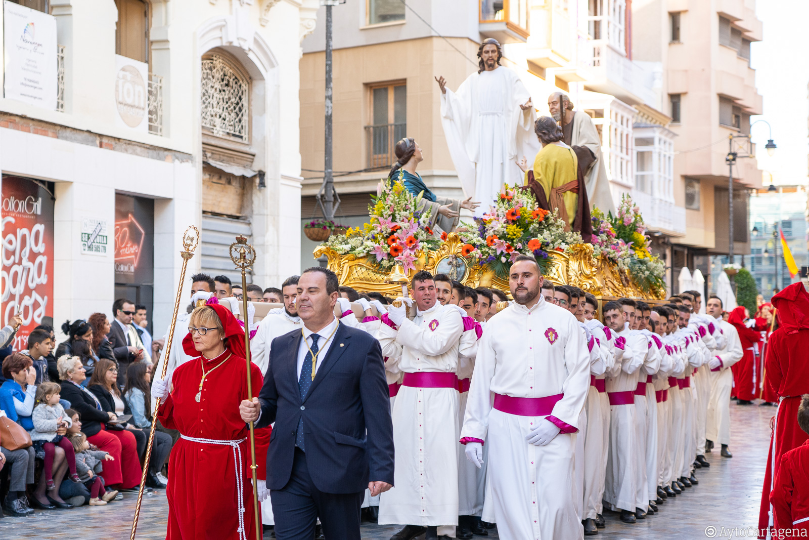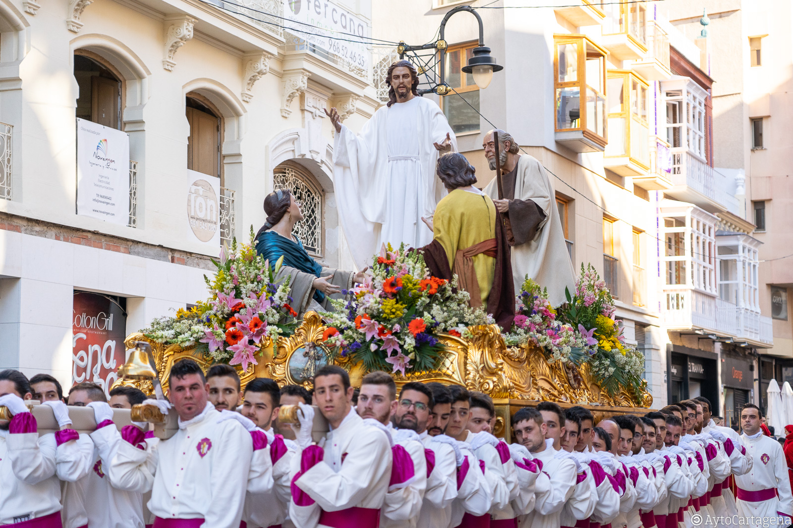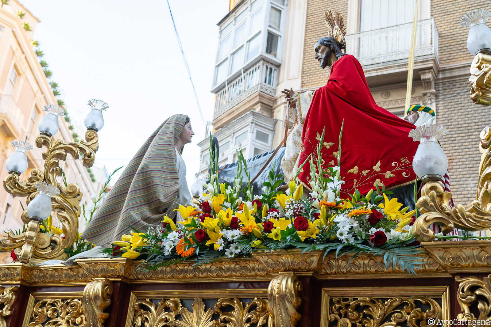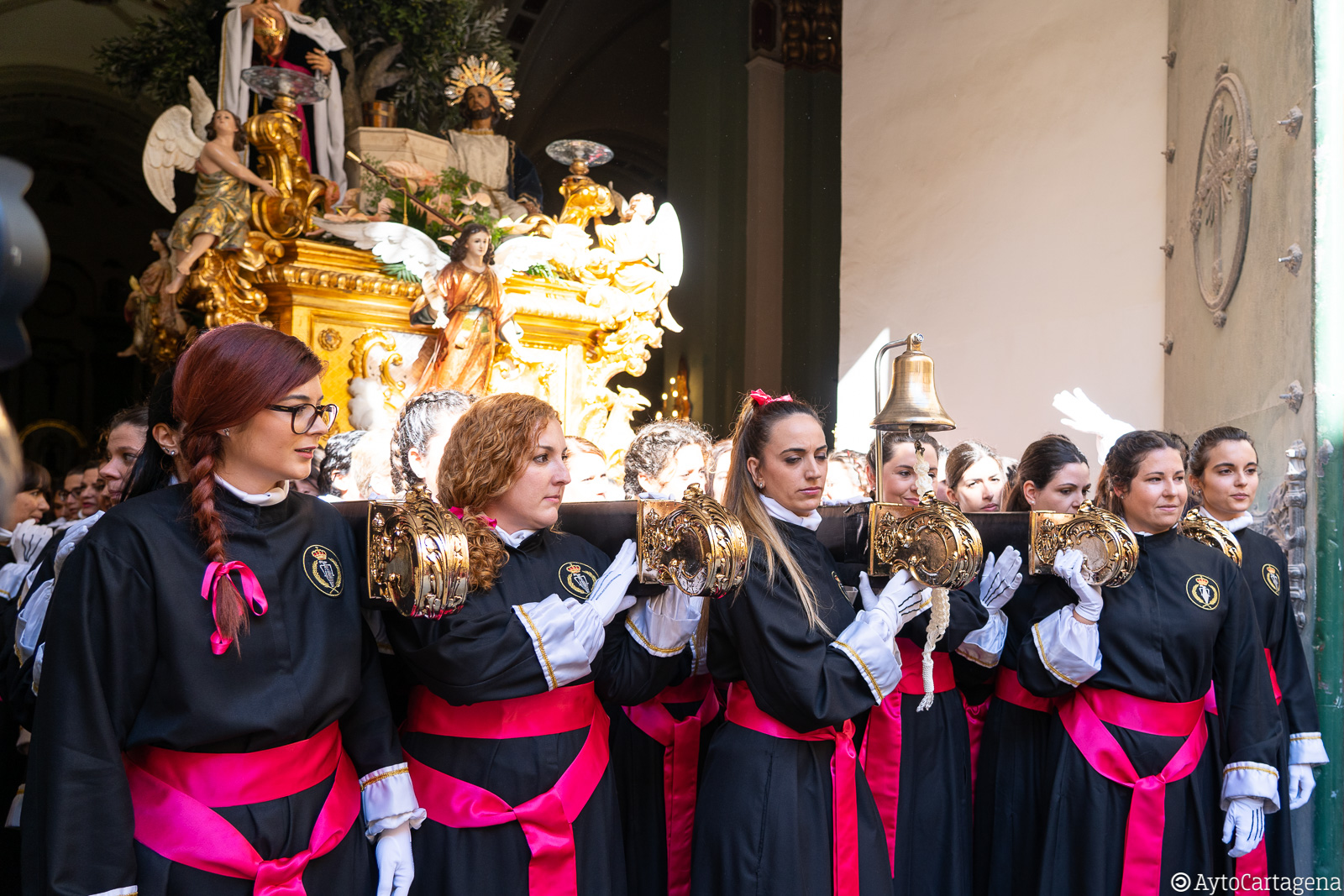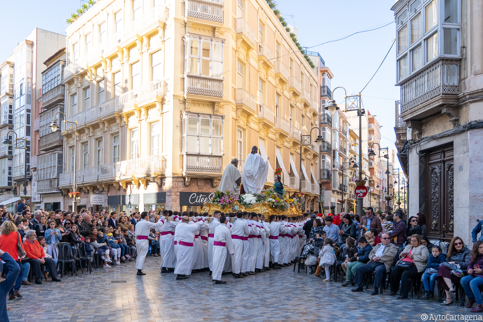 Las calles de la ciudad se inundaron de niños ataviados con trajes de hebreos conjuntados por los colores de las agrupaciones a las que pertenecen. Un desfile salpicado de palmas y varas de olivos armonizado con el típico ritmo cadencioso de las procesiones cartageneras.