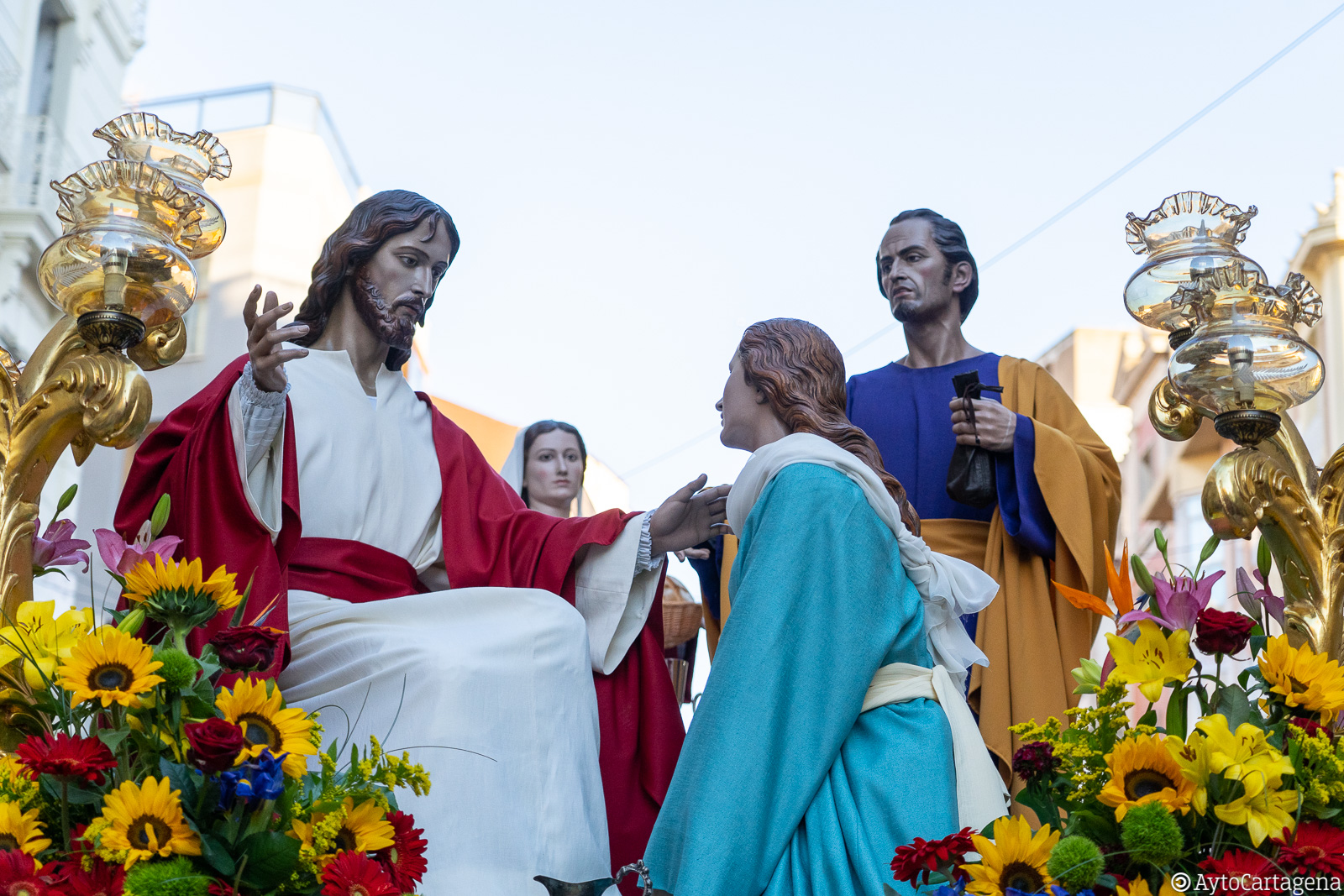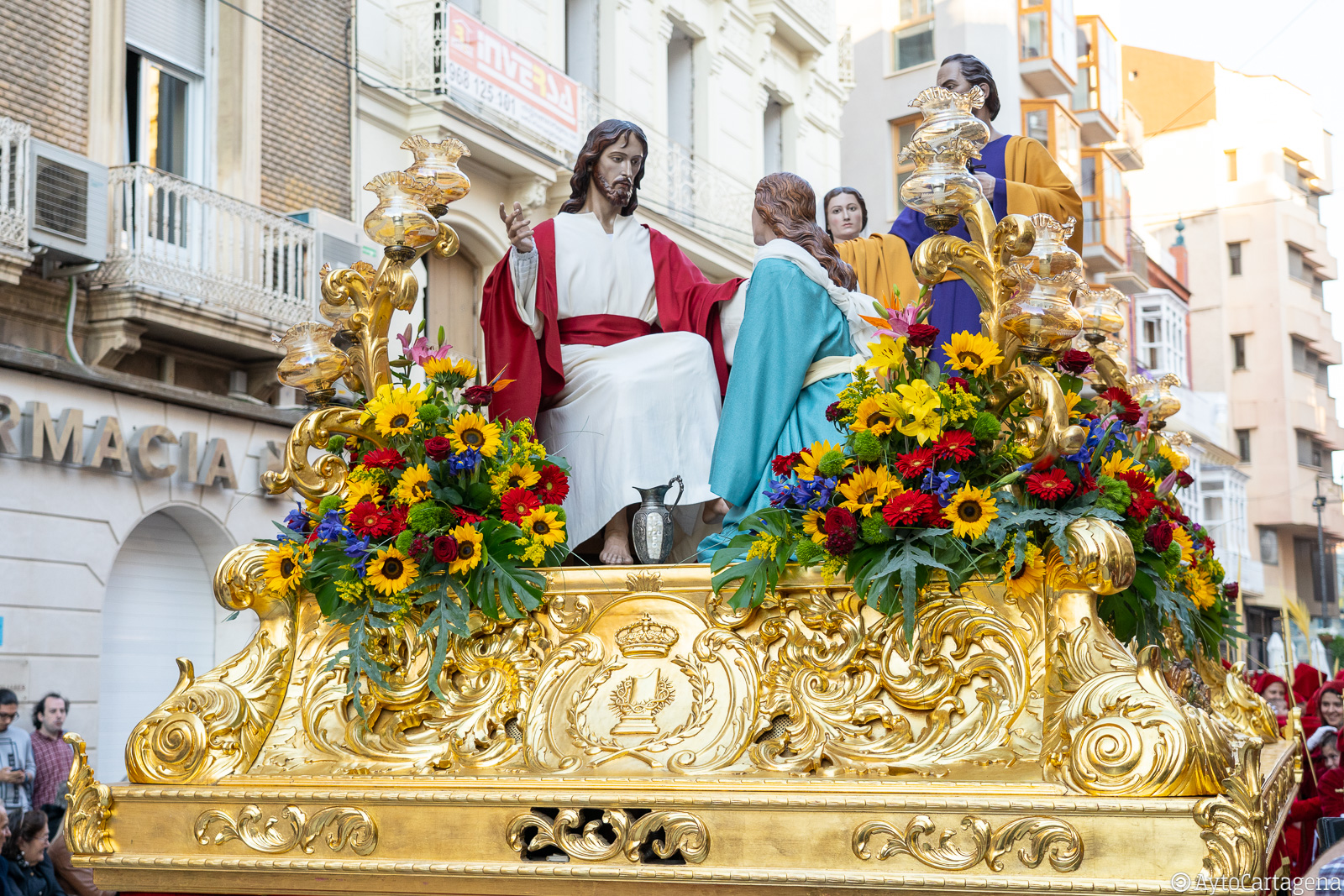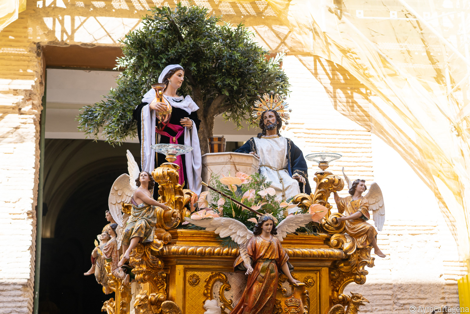 El Tercio infantil del Prendimiento y de la Cena desfilaron al ritmo de los sones de la Agrupación Musical Sauces, que dieron paso a las Samaritanas que portaron con maestría el paso tallado por José Sánchez Lozano.