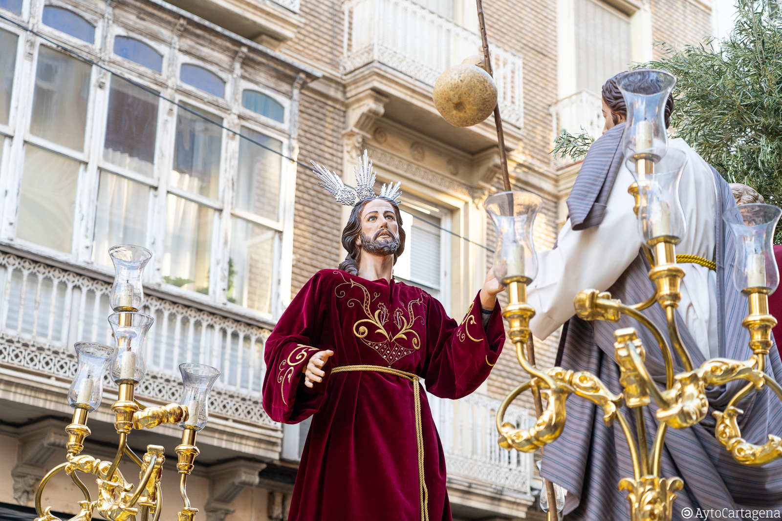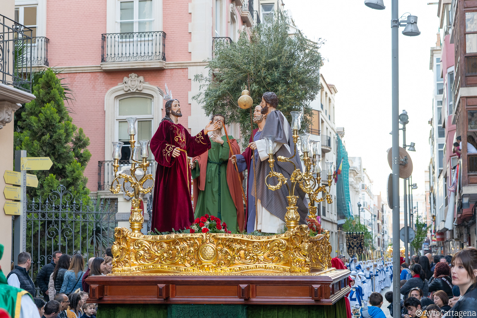 Las calles del Aire, Cañón, Mayor, Plaza de San Sebastián, Puertas de Murcia, Santa Florentina, Parque, Plaza López Pinto, Serreta, Plaza de la Serreta, Caridad, Plaza de la Inmaculada, Duque, Plaza de San Ginés, San Francisco, Campos, Jara disfrutaron de la chavalería del tercio infantil de la Sentencia, del Ósculo y de la Oración del Huerto.